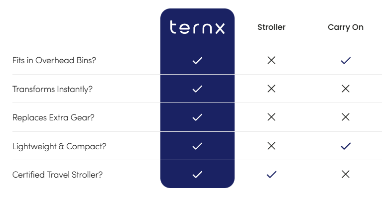 TernX vs Carrinho de bebê vs Bagagem de mão